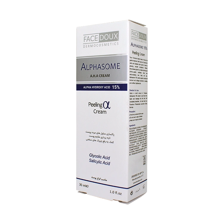 کرم لایه بردار AHA 15 درصد آلفازوم فیس دوکس حجم 30 میلی لیتر-قیمت کرم لایه بردار AHA 15 درصد آلفازوم فیس دوکس حجم 30 میلی لیتر